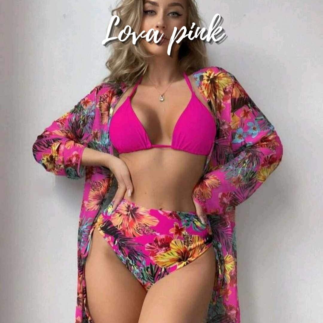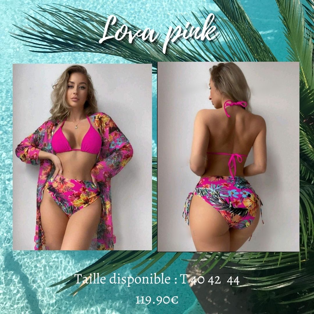 Ensemble Lova Pink , bikini et kimono intégré maillots de bains